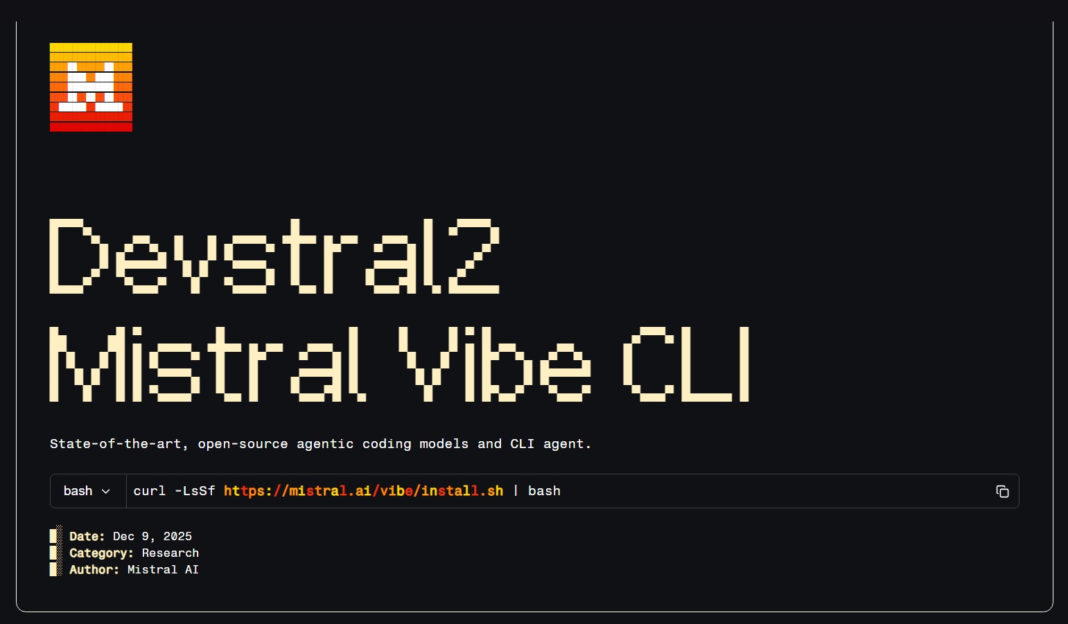 Mistral також випускає Mistral Vibe CLI, власний інтерфейс командного рядка, який доступний як розширення в Zed для використання всередині IDE. Подібно до чат-боту Mistral Le Chat, який може запам’ятовувати попередні розмови з користувачами та використовувати цей контекст для відповідей, Mistral Vibe CLI також підтримує історію діалогів та може сканувати структури файлів і статуси Git для створення контексту.