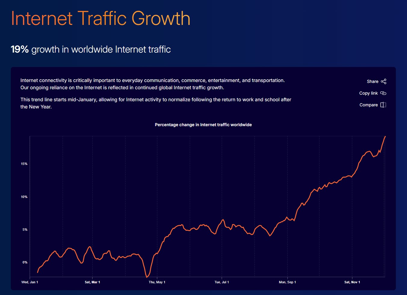 Згідно щорічного звіту Cloudflare, глобальний інтернет-трафік за останній рік зріс на 19% (в Україні на 15%), але це зростання пов’язано здебільшого з роботою ботів, DDoS-атаками та все більш агресивною автоматизацією. Трафік, що створюється штучним інтелектом, продовжує зростати.