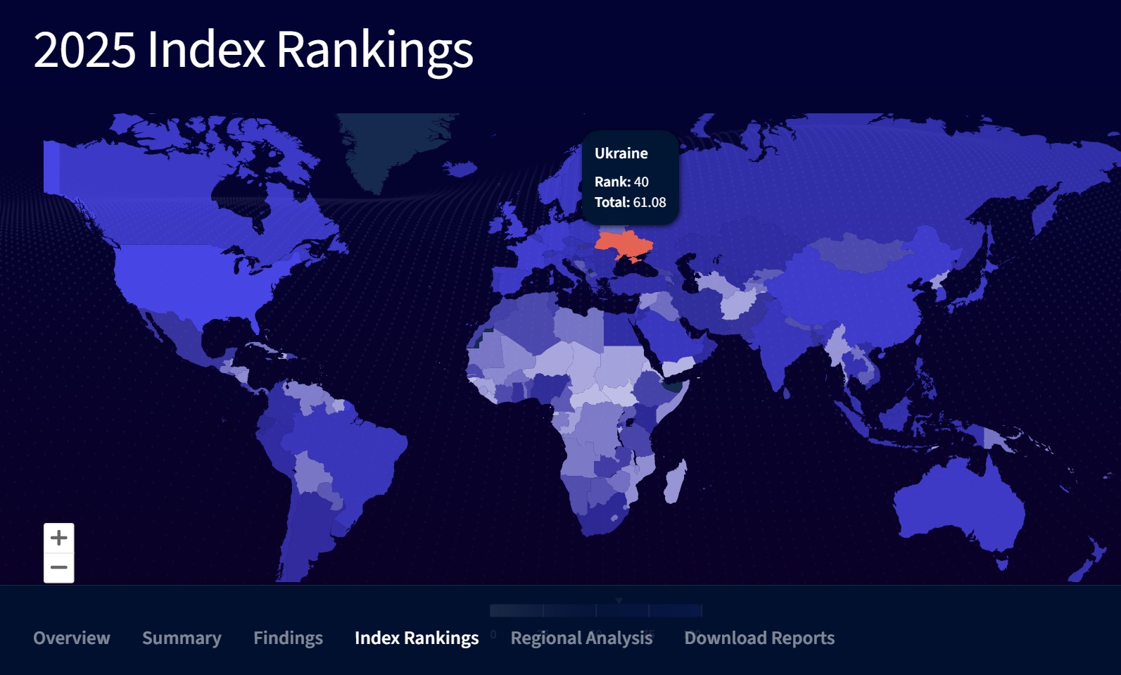 За рік наша країна піднялась на 14 позицій у світовому рейтингу (40 місце) та зайняла 8 місце в рейтингу Східної Європи, випереджаючи Латвію, Росію, Румунію, Болгарію та інші країни. Трійка лідерів регіону: Естонія (19 місце в світі), Польща (24), Литва (29).