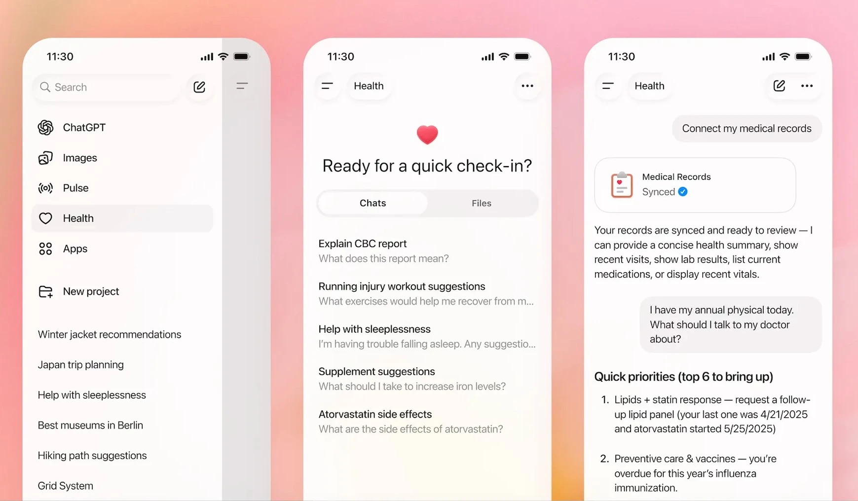 Компанія OpenAI оголосила про запуск незалежного від основного інтерфейсу ChatGPT спеціального розділу ChatGPT Health. У ньому користувачі зможуть ставити запитання, пов’язані зі здоров’ям.